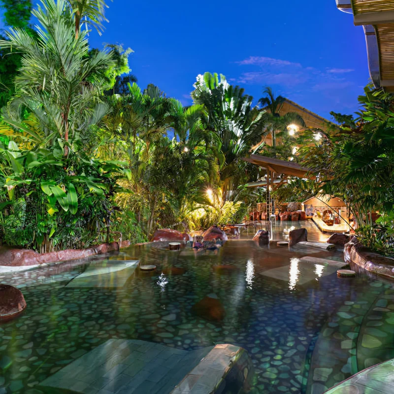 - Access to 25 thermal pools with temperatures from 93°F to 152°F