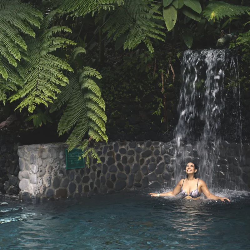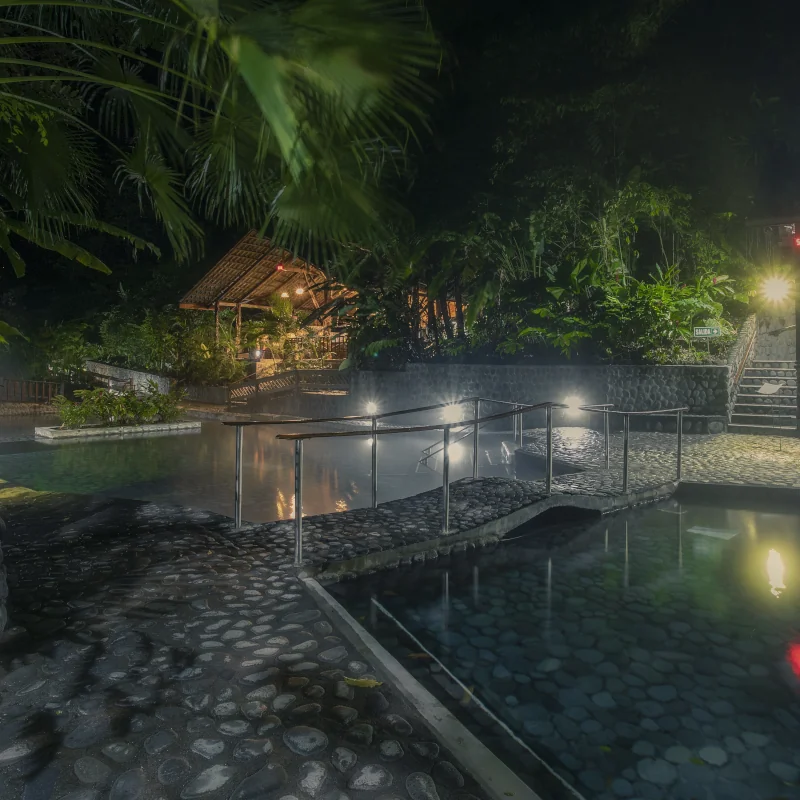 Immerse yourself in a sanctuary of relaxation at Ecotermales, one of La Fortuna’s most exclusive natural hot springs. Surrounded by lush rainforest, the experience offers a serene retreat where cascading mineral waters gently massage the neck and back, soothing every muscle. Guests of all ages can unwind in a carefully curated ambiance that balances luxury with nature’s tranquility, with limited entry ensuring a peaceful and uncrowded setting. Enhance your visit with a thoughtfully prepared meal included in the pass, allowing you to savor fresh, organic flavors sourced locally. Whether visiting during the morning and early afternoon or in the evening, your experience unfolds at a leisurely pace, inviting moments of mindfulness, gentle exploration of the pools, and quiet reflection amidst the tropical greenery. A visit here pairs beautifully with other La Fortuna adventures, providing the perfect restorative pause.