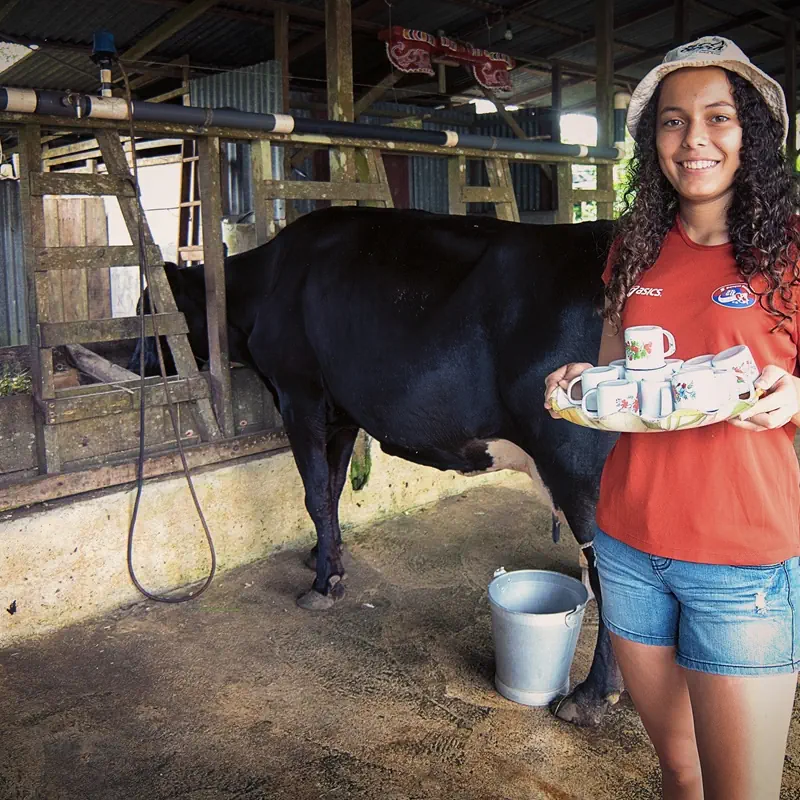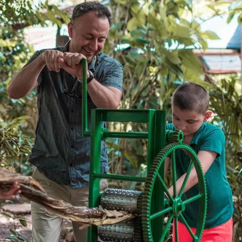 • Hands-on activities: cow milking, sugarcane pressing, and liquor tasting