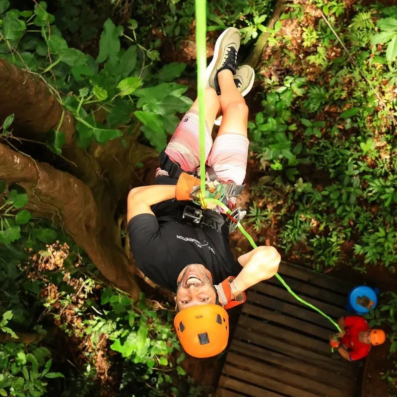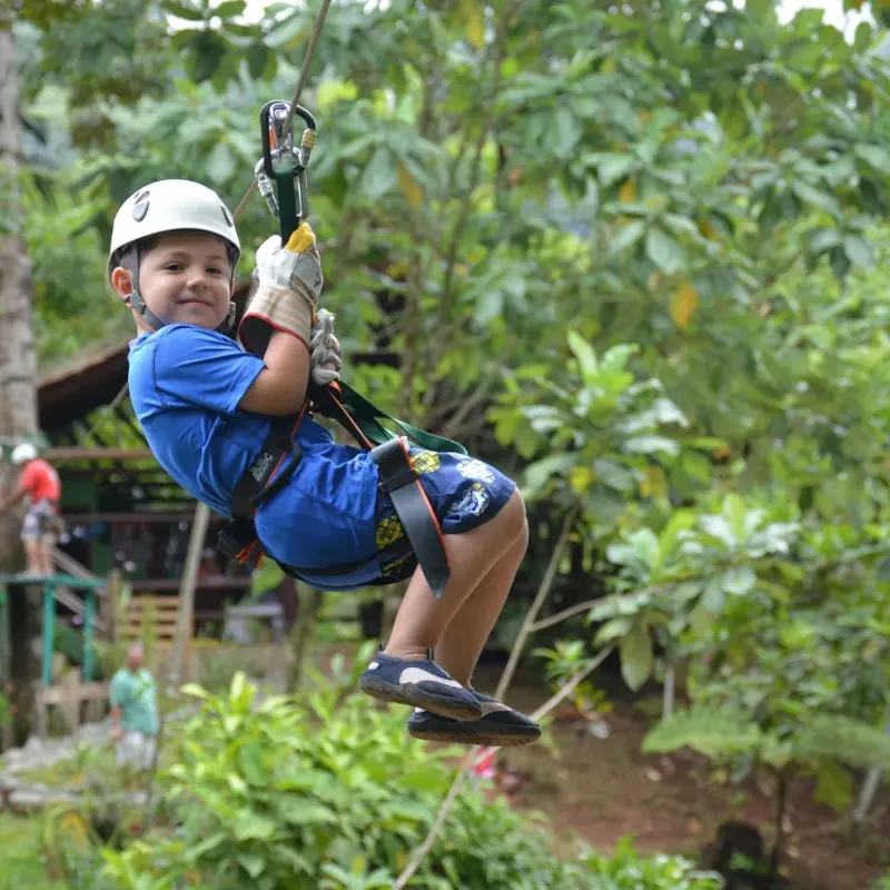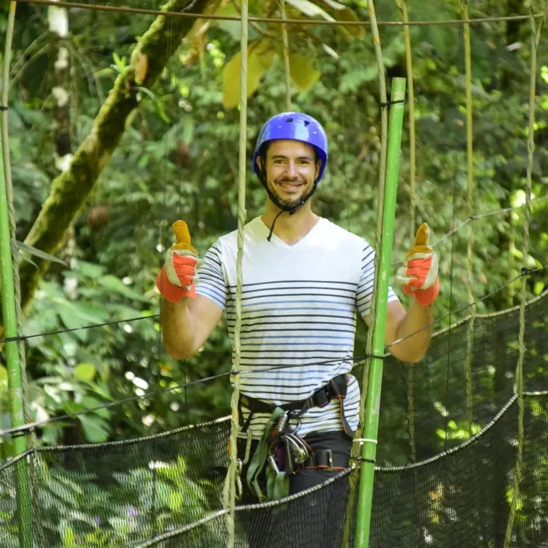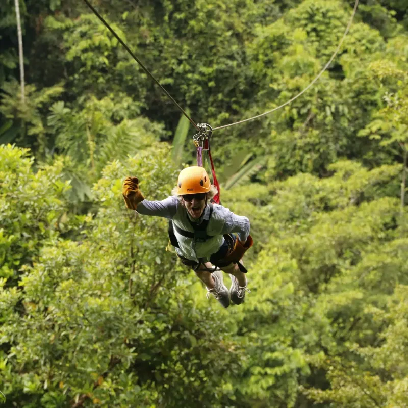 This exhilarating experience features 10 zip lines and 21 platforms, each designed to offer a unique view of the tropical canopy. Cross a 75-meter suspension bridge, test your courage on the Superman cable, and take the leap on the unforgettable Tarzan drop into a natural waterfall — a one-of-a-kind feature found only in this reserve. Between flights, enjoy the sound of rushing water, the calls of tropical birds, and the vibrant green of the forest that surrounds you.